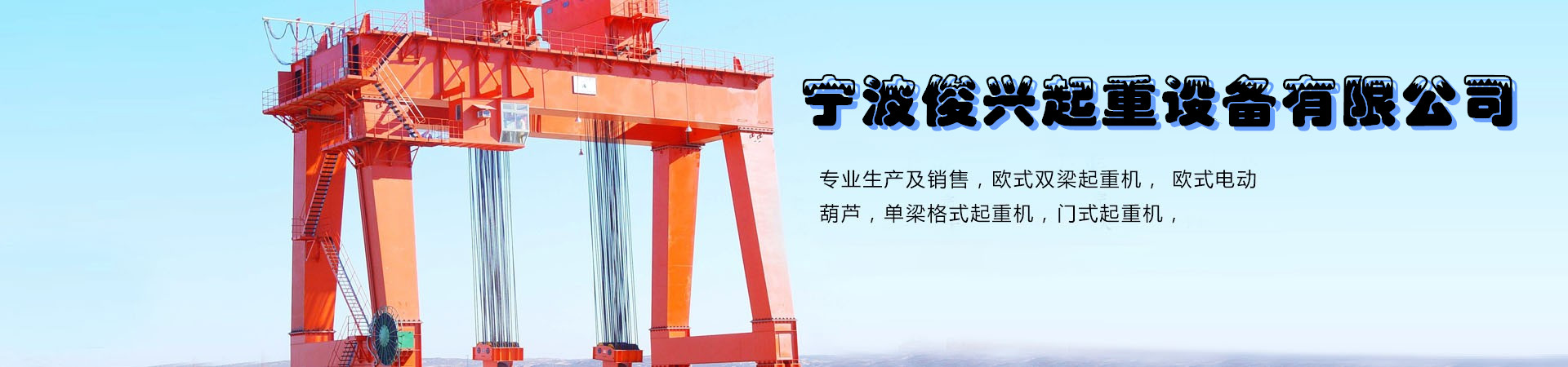 宁波俊兴起重设备有限公司,公司负责人:徐丙俊先生,24小时销售热线:13777111760,本公司是河南矿山起重设备有限公司长沙总代理,河南中州智能起重设备有限公司长沙总代理,公司主营:单梁起重机、双梁起重机、电动葫芦、门式起重机、工程起重机、小型起重机械、单梁起重机配件、双梁起重机配件、门式起重机配件、工程起重机配件等等。本公司是中国起重行业协会成员单位和中国重工协会理事单位。具有电动葫芦、单、双梁起重机生产许可证和制造、安装、维修安全认可证及320T桥、门式起重机和280T铸造吊制造安全认可证。严格的...【更多】