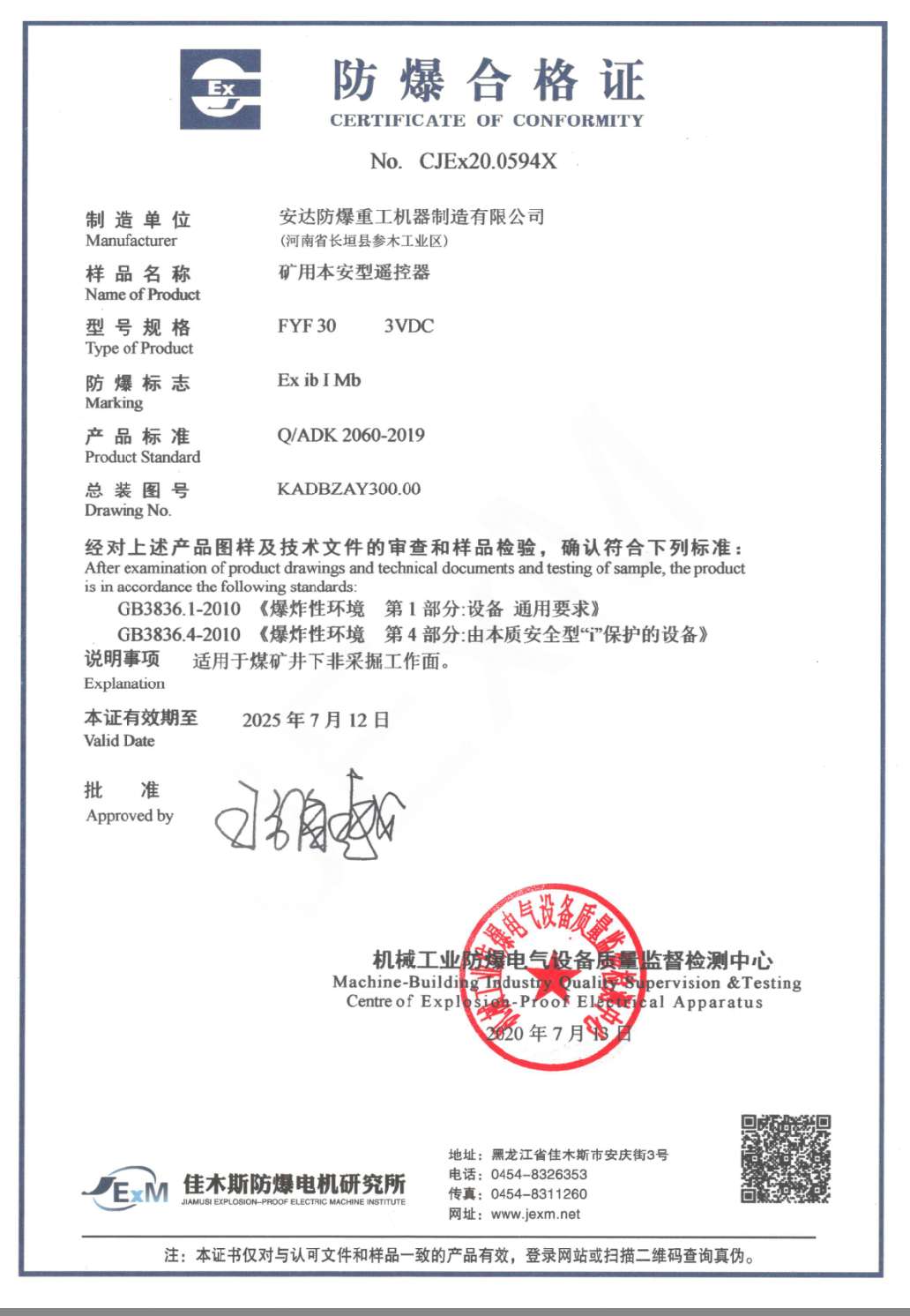 矿用本安型??仄? 防爆合格证