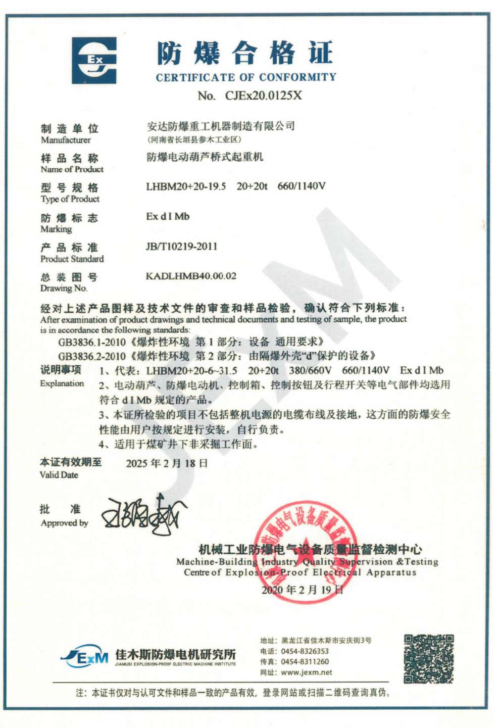 » 防爆电动葫芦桥式起重机 防爆合格证