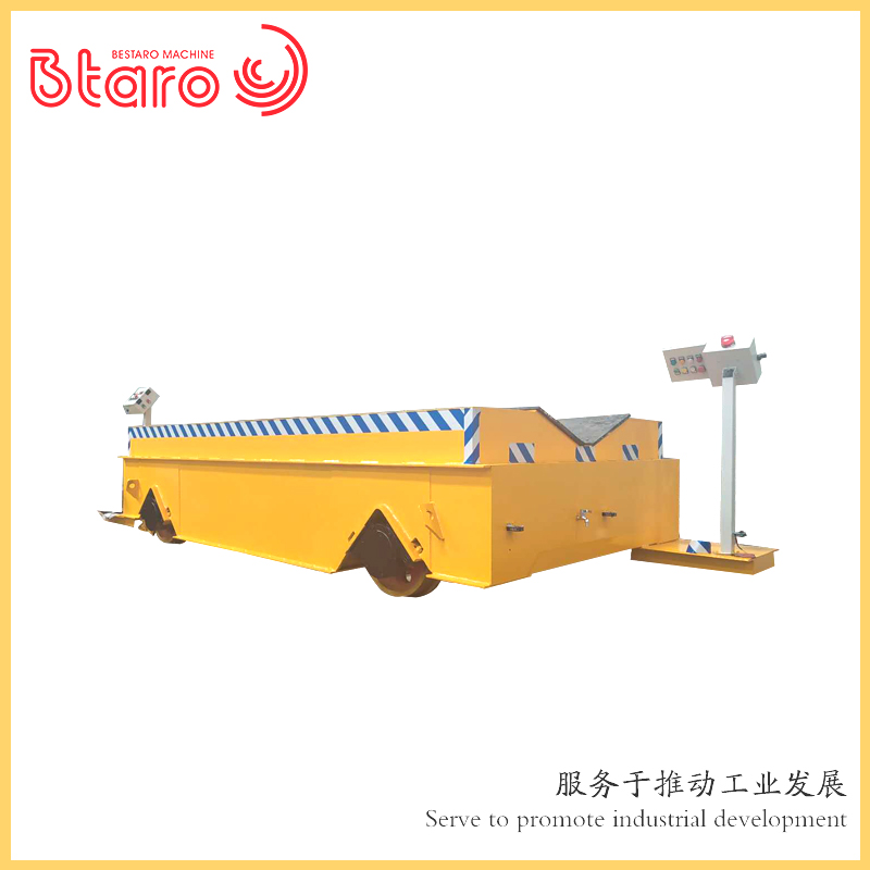 安阳电动平车生产供应商—百达力欧公司制造,电动平车,又称电动平板车、电平车、台车、过跨车、电动轨道车、地爬车等,是一种厂内有轨电动运输车辆,首先它是一种轨道型运输车辆,需要在地面上铺设轨道,轨道一般为工字型面接触道轨;其次它是电驱动车辆,在电机减速机驱动下自动运行,再次它是一种平板车,台面平整无厢盖,特殊情况下也可以是非平面但无厢盖,车体无方向盘只有前进后退方向(即使转弯也城靠轨道转弯)。此种车辆具有结构简单、使用方便、承载能力大、不怕脏不怕砸、维护容易、使用寿命长等特点,因其方便、壮实、经济、实用、易清理等诸多优点,成为企业厂房内部及厂房与厂房之间短距离定点频繁运载重物的常用运输工具。