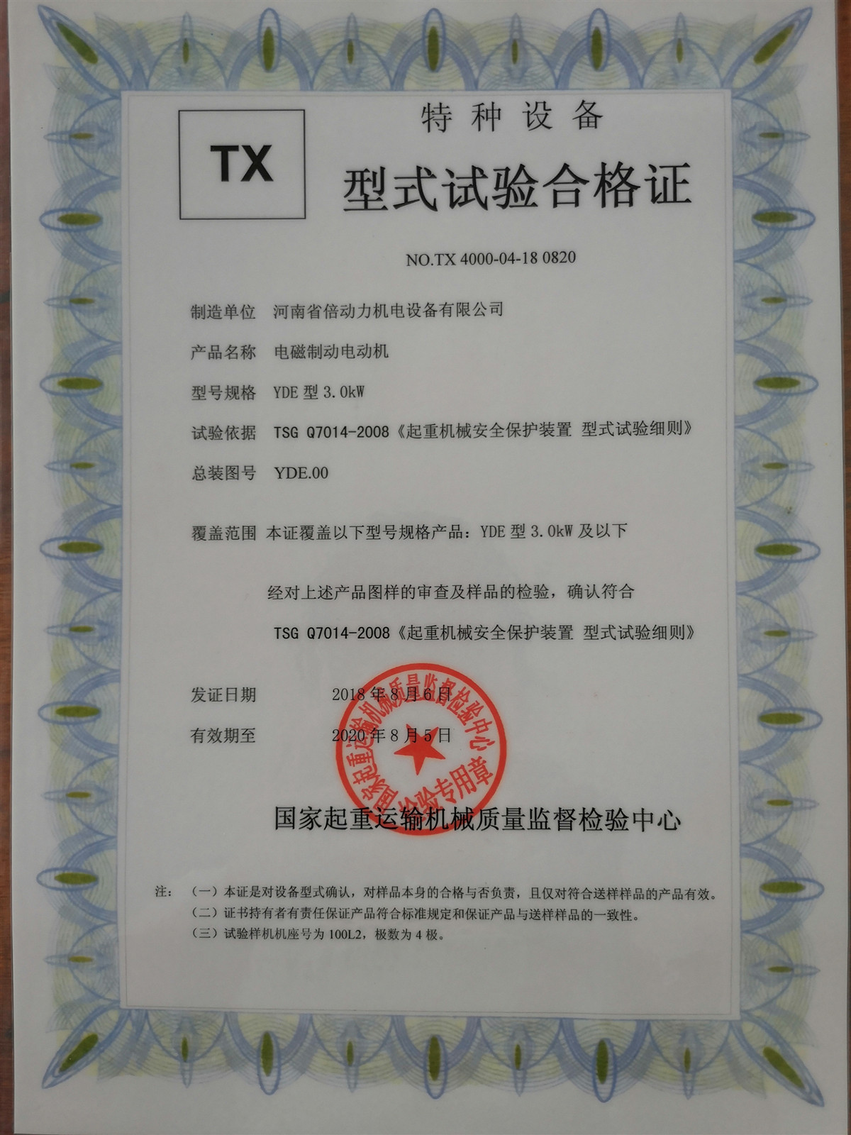 本证覆盖以下型号规格产品 YDE3.0KW 及以下