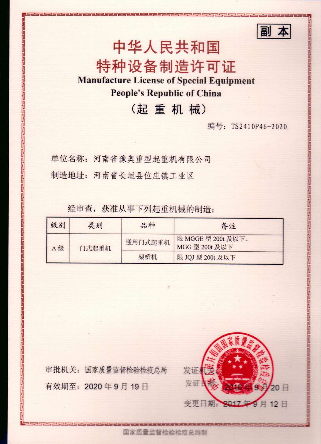 » 特种设备制造许可证