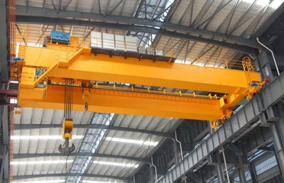 桥式起重机是横架于车间、仓库和料场上空进行物料吊运的起重设备。由于它的两端坐落在高大的水泥柱或者金属支架上,形状似桥。桥式起重机的桥架沿铺设在两侧高架上的轨道纵向运行,可以充分利用桥架下面的空间吊运物料,不受地面设备的阻碍。它是使用范围**广、数量**多的一种起重机械