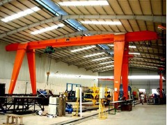 它的金属结构像门形框架,承载主梁下安装两条支脚,可以直接在地面的轨道上行走,主梁两端可以具有外伸悬臂梁。