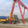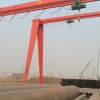 它的金属结构像门形框架,承载主梁下安装两条支脚,可以直接在地面的轨道上行走,主梁两端可以具有外伸悬臂梁。