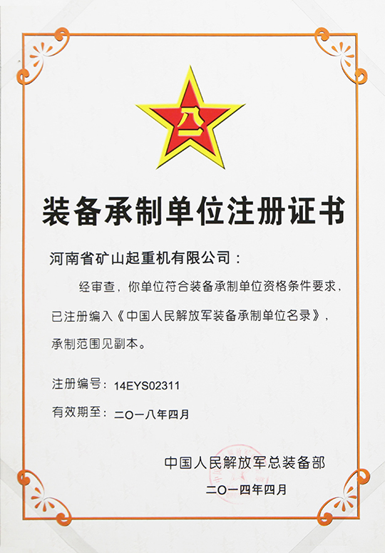 » 装备承制单位注册证书