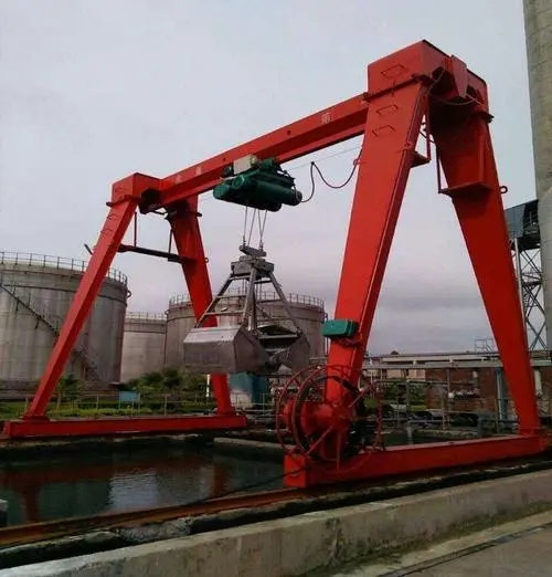 它的金属结构像门形框架,承载主梁下安装两条支脚,可以直接在地面的轨道上行走,主梁两端可以具有外伸悬臂梁。