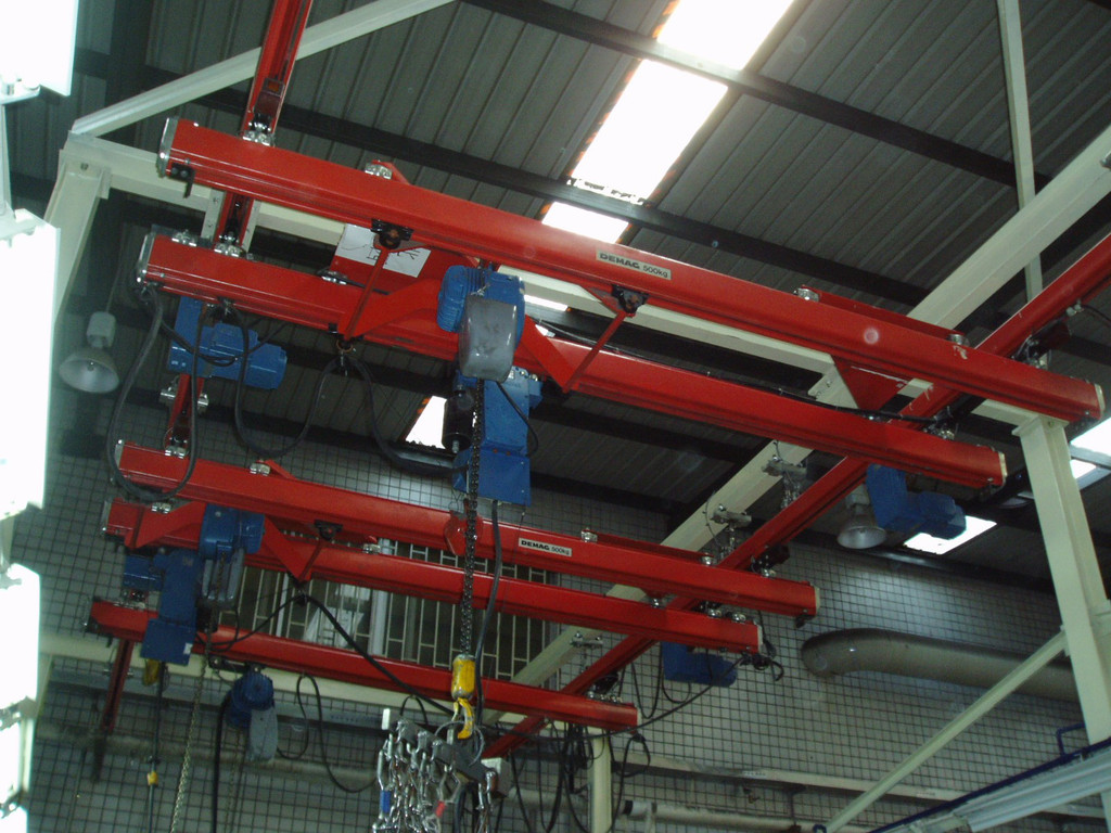 一个能承受足够强度、安全支撑起重机负载的屋顶结构。客户可以在一套固定型轨上安装多个主梁,大大地提升了生产效率。 此类产品为钢质结构,起重量为75-2000kg,主梁总长度可以达到10m。相对于传统的梁式起重机,封闭型轨的设计搬运所使用的力仅为其三分之一。桁架式钢轨的设计使跨度更大,安装布局有更多的灵活性。
