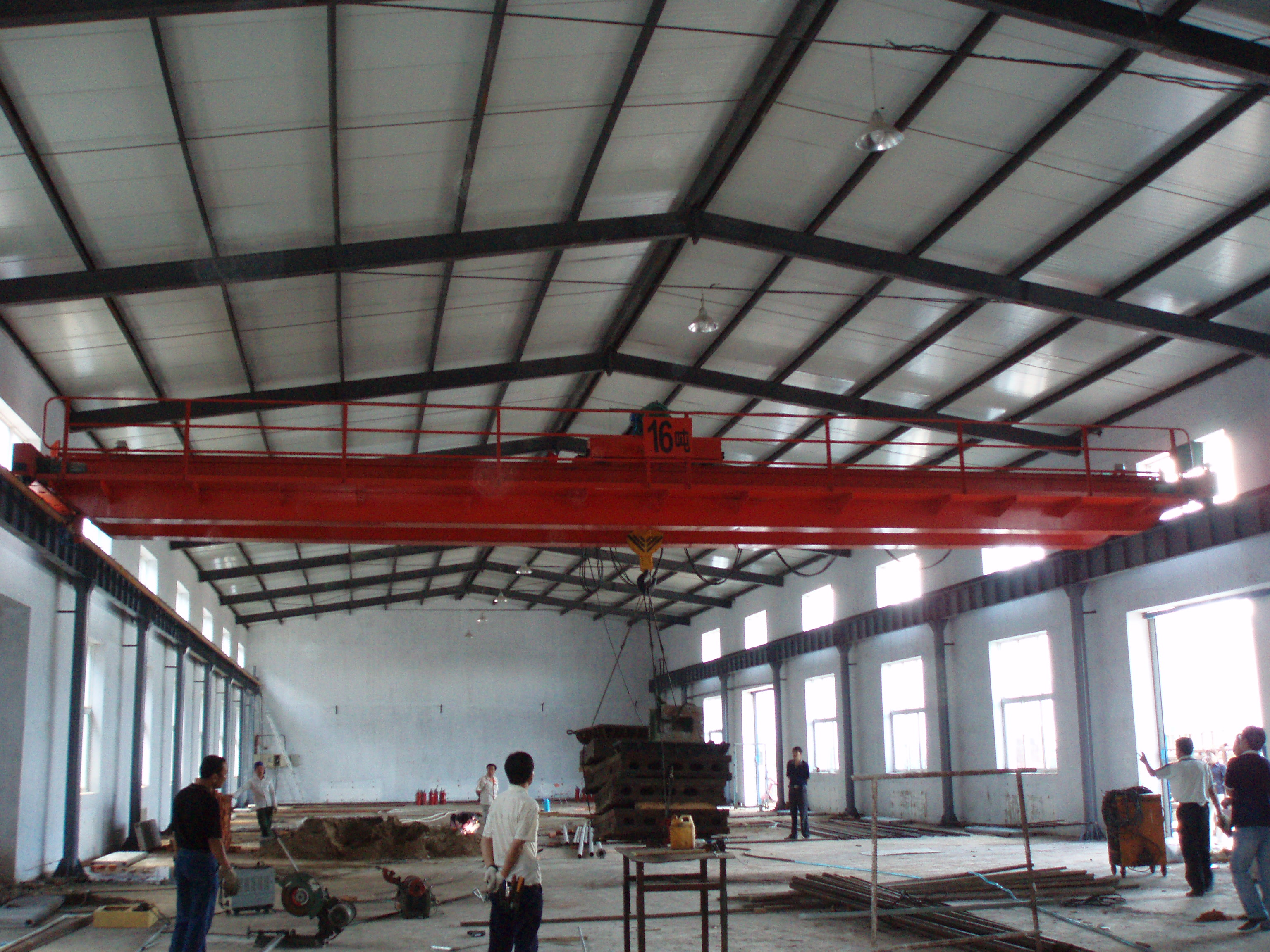 桥式起重机是横架于车间、仓库和料场上空进行物料吊运的起重设备。由于它的两端坐落在高大的水泥柱或者金属支架上,形状似桥。桥式起重机的桥架沿铺设在两侧高架上的轨道纵向运行,可以充分利用桥架下面的空间吊运物料,不受地面设备的阻碍。它是使用范围**广、数量**多的一种起重机械。
