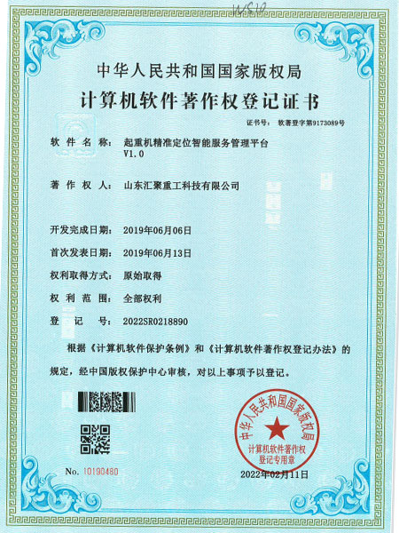 » 起重机**定位智能服务管理平台 V1.0(自动化证书)