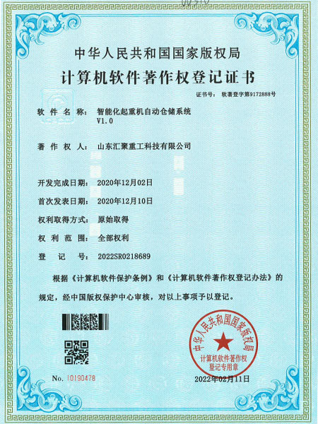 智能化起重机自动仓储系统 V1.0(自动化证书)