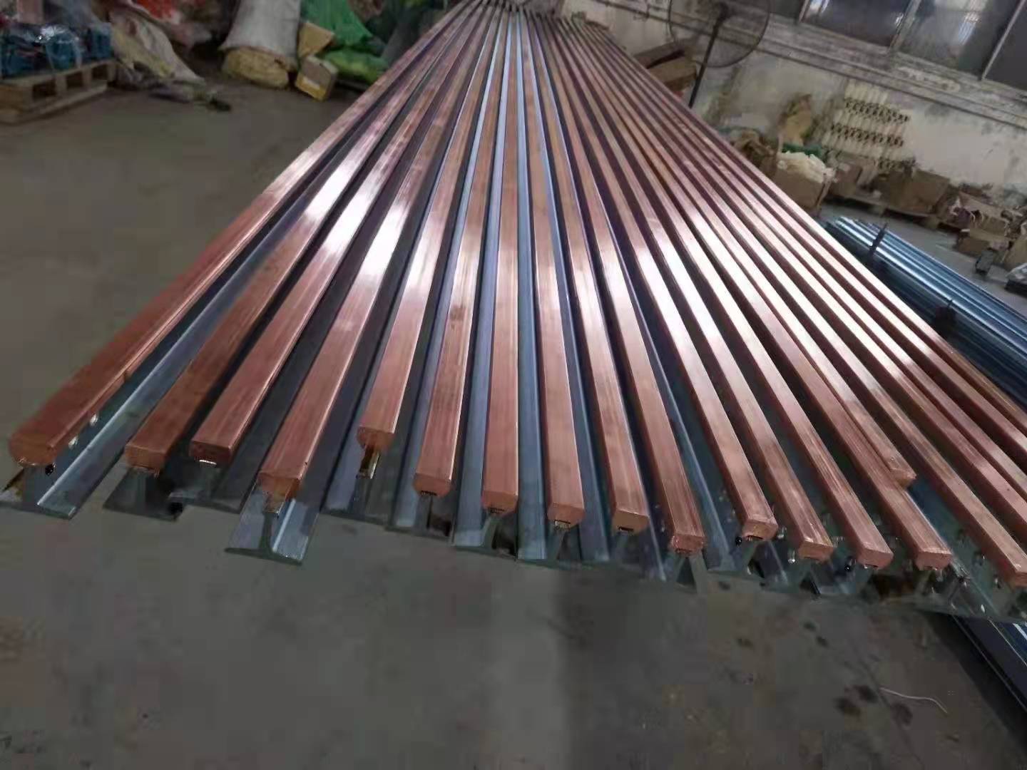 QYT系列高温刚体滑触线是由导电铜轨和燕尾式轻轨构成的,优良的嵌装工艺保证二者之间的紧密结合,用高强度专用绝缘子支撑,安装或焊装在道轨梁的支架上,导电铜轨选用**电解铜,通过电热挤轧的方式,由专用轧机逐次逼近一次性轧制成形,与作为载体的燕尾式轻轨紧密嵌装,提高滑线的强度、钢度和使用寿命。