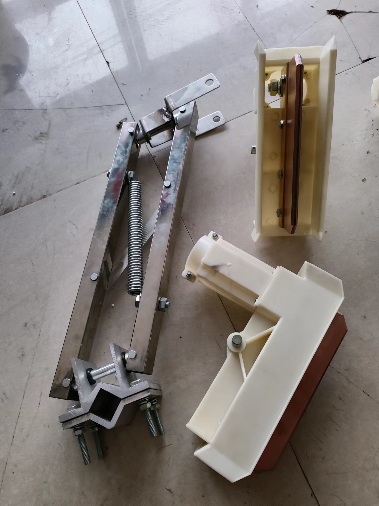 集电器是滑触线系统中集电侧拾取电能的主要装置,它通过集电刷与导轨的滑动接触,将电能直接传导至用电器,从而实现系统的移动供电。集电器由机械结构的张力装置和直接与导轨滑动接触的集电刷两部分组成。