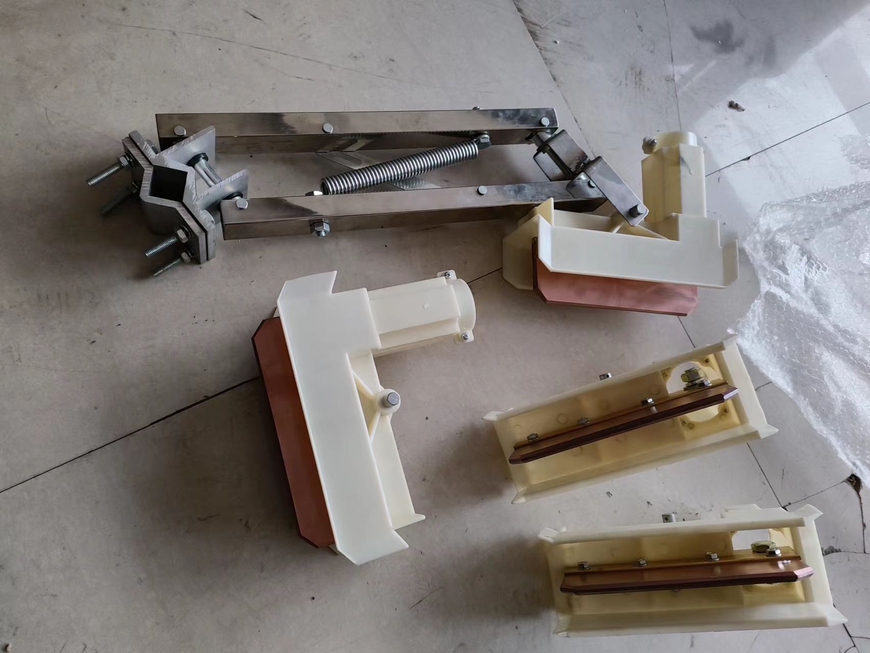 集电器是滑触线系统中集电侧拾取电能的主要装置,它通过集电刷与导轨的滑动接触,将电能直接传导至用电器,从而实现系统的移动供电。集电器由机械结构的张力装置和直接与导轨滑动接触的集电刷两部分组成。