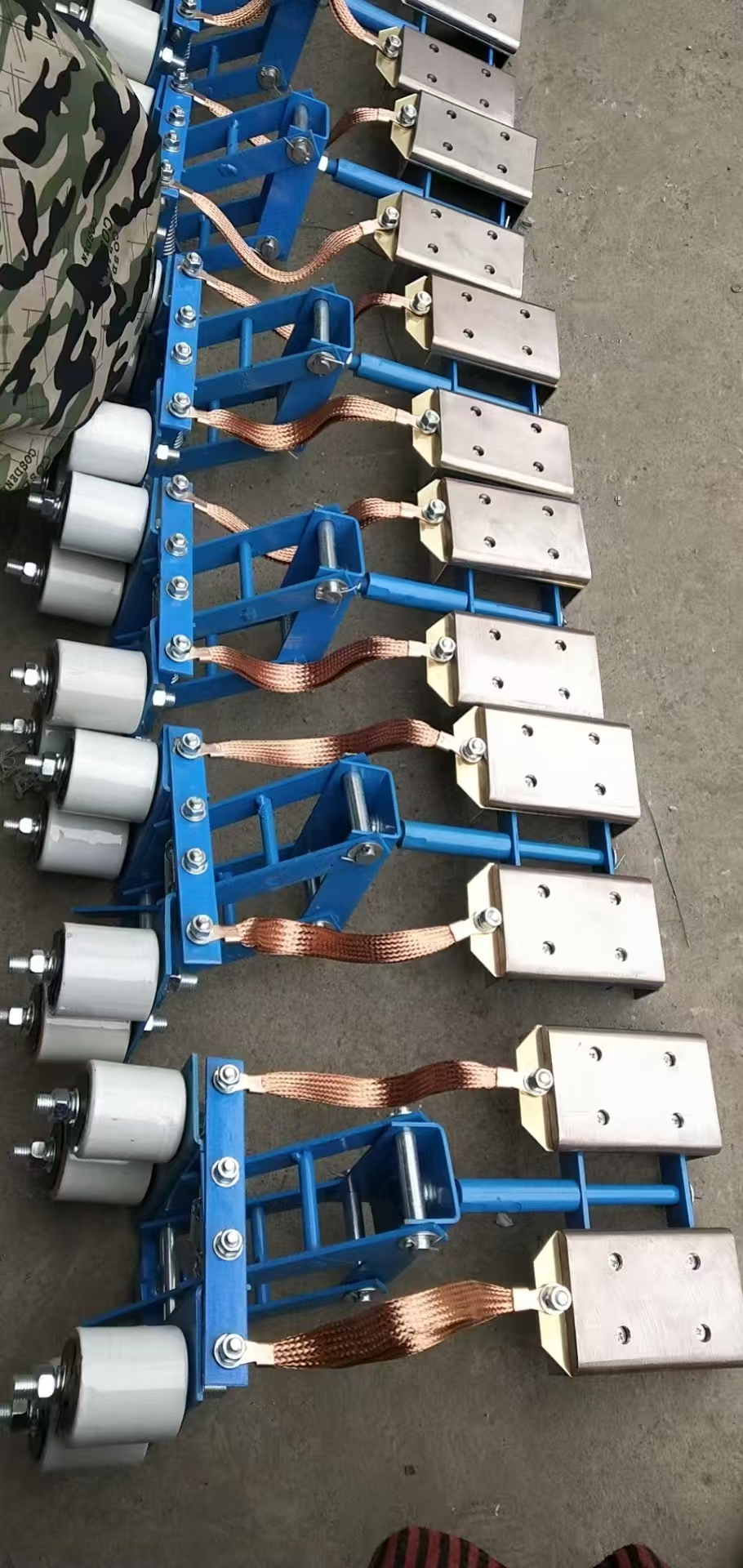 集电器是滑触线系统中集电侧拾取电能的主要装置,它通过集电刷与导轨的滑动接触,将电能直接传导至用电器,从而实现系统的移动供电。集电器由机械结构的张力装置和直接与导轨滑动接触的集电刷两部分组成。