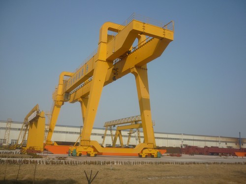 门式起重机(又称龙门起重机)是桥架通过两侧支腿支撑在地面轨道上的