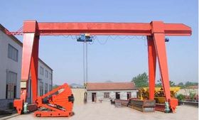 它的金属结构像门形框架,承载主梁下安装两条支脚,可以直接在地面的轨道上行走,主梁两端可以具有外伸悬臂梁。