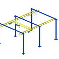 3. 主梁: 刚性主梁同轨道的材质、性能、型号和规格一样。不同型号的轨道和主梁通过小车和主梁吊夹可组合成承受不同负载的各种类型的悬挂起重机。根据需要主梁有单梁、桁架式梁、伸缩梁等不同类型的结构。主梁的跨度为9m,运动形式分手动和电动。