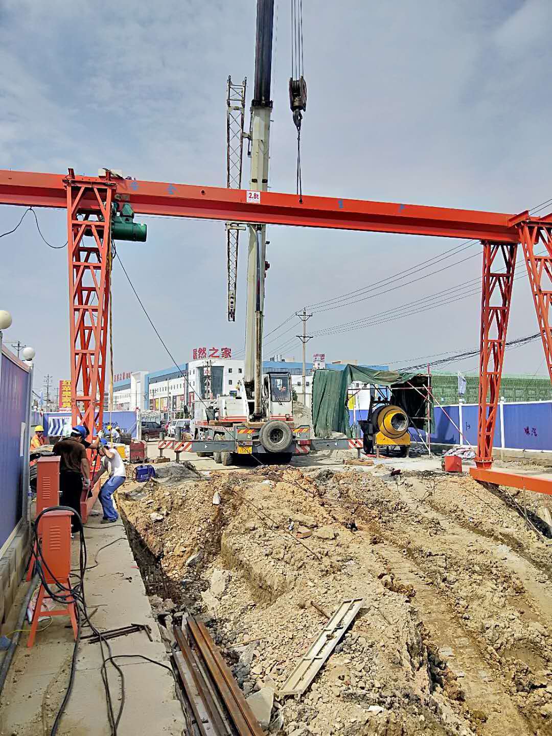 关于门式起重机主梁跨中上拱度的检验方法是这样的,就是用垫架将主梁垫平,并使两端座板处上盖板的标高相互差大于等于2mm。如果是双主梁结构,垫架应置于主梁座板正下方;如果是单主梁结构,垫架支撑中心线置于主梁座板外侧700mm处。另外就是门式起重机保护接地的检验了,一方面需要检查塔机金属结构与电气设备外壳连接是否良好;另一方面检查零线重复接地,如果实测重复接地电阻大于等于10时,可以用埋入地面的塔身重复接地,否则应应设单独的接地体做重复接地。