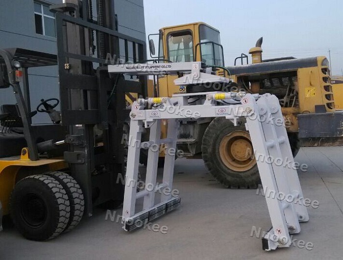 诺克叉车砖块夹,适用于搬运各种规格的砖块,包括加气砖、水泥砖等等,在无托盘的情况下实现砖块等建筑材料的高效、经济搬运堆垛。它使用夹持的方式,以高耐磨、高强度的夹臂夹起砖块,去除传统叉车搬运方式对托盘的依赖,减少了托盘的配置成本,并且能根据实际施工情况,对砖块进行不同的大、小批量的搬运,从而不必让人力去分批处理,有效提高砖块搬运效率。