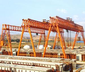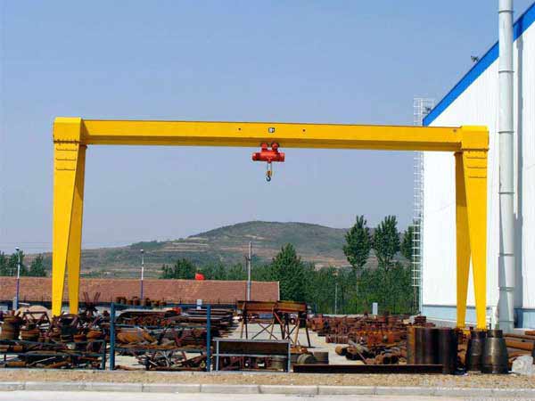 单主梁悬臂门式起重机结构简单,制造安装方便,自身质量小,主梁多为偏轨箱形架结构。与双主梁门式起重机相比,整体刚度要弱一些。因此,当起重量Q≤50起重机、跨度S≤35m时,可采用这种形式。单主门梁式起重机门腿有L型和C型两种形式.L型的制造安装方便,受力情况好,自身质量较小,但是,吊运货物通过支腿处的空间相对小一些。C型的支脚做成倾斜或弯曲形,目的在于有较大的横向空间,以使货物顺利通过支脚。