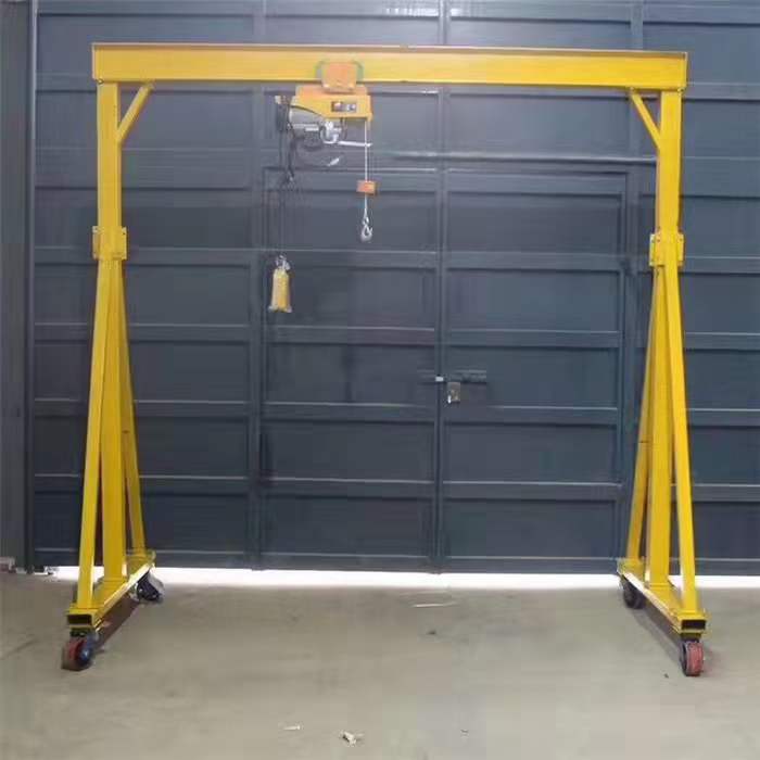 手推简易门式起重机,操作方便.用于工厂,仓库,料场等不同场合吊运货物.本产品设有电动和手动两种操作形式.