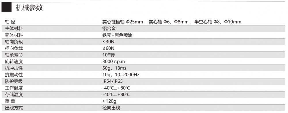 轴径 实心键槽轴 Φ25 mm,实心轴 Φ6、Φ8mm