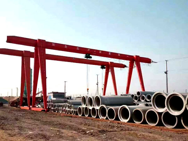 它的金属结构像门形框架,承载主梁下安装两条支脚,可以直接在地面的轨道上行走,主梁两端可以具有外伸悬臂梁。
