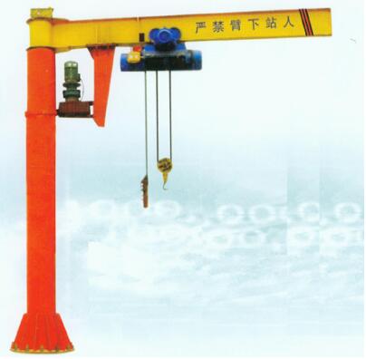 悬臂起重机是近年发展起来的中小型起重装备,结构独特,安全可靠,具备高效、节能、省时省力、灵活等特点,三维空得内随意操作,在段距、密集性调运的场合,比其它常规性吊运设备更显示其优越性。本产品广泛用于各种行业的不同场所。悬臂起重机工作强度为轻型,起重机由立柱,回转臂回转驱动装置及电动葫芦组成,立柱下端通过地脚螺栓固定在混凝土基础上,由摆线针轮减速装置来驱动旋臂回转,电动葫芦在旋臂工字钢上作左右直线运行,并起吊重物。起重机旋臂为空心型钢结构,自重轻,跨度大,起重量大,经济耐用。内置式行 旋臂吊MODE型走机构,采用带滚动轴承的特种工程塑料走轮,摩擦力小,行走轻快;结构尺寸小,特别有利于提高吊钩行程。