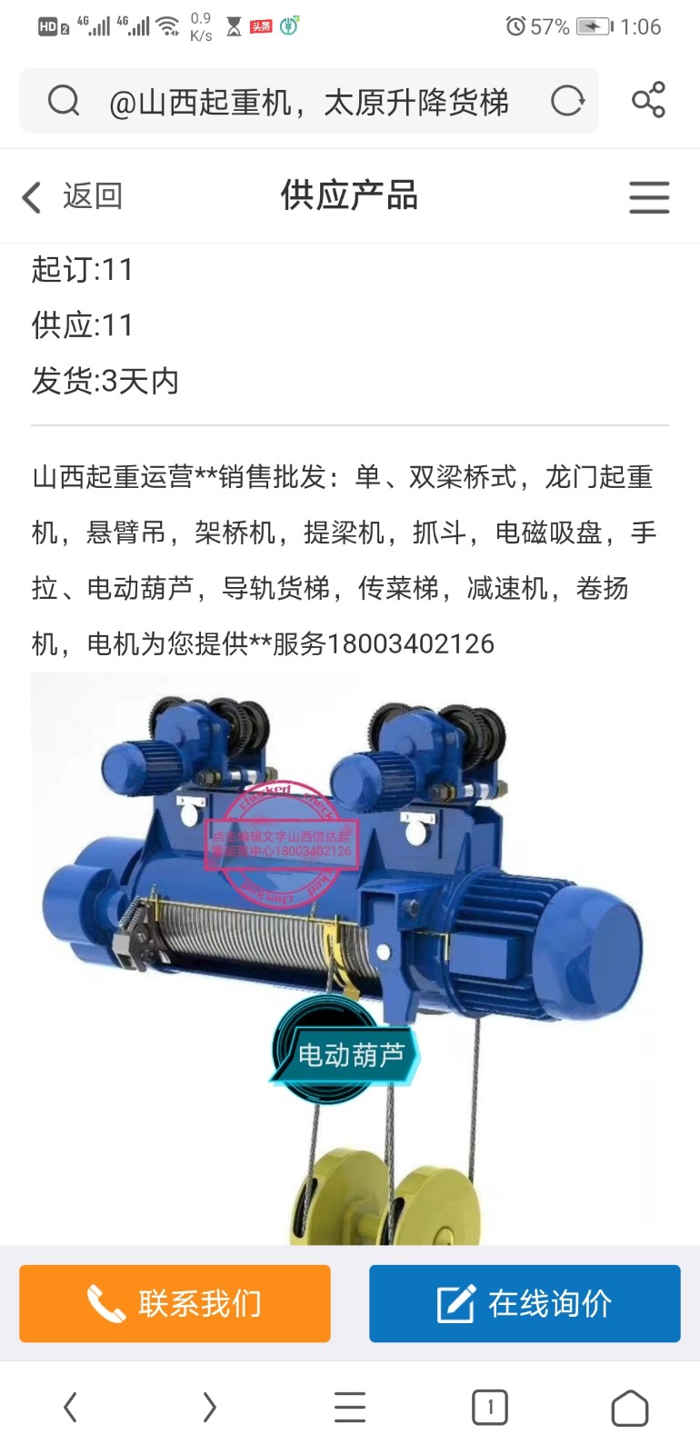 联系我时,请告知来自全球起重机械网,将会给你95折优惠,谢谢!
