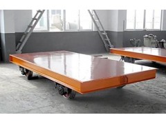 电动平车,又称电动平板车、电平车、台车、过跨车、电动轨道车、地爬车等,是一种厂内有轨电动运输车辆,首先它是一种轨道型运输车辆,需要在地面上铺设轨道,轨道一般为工字型面接触道轨;其次它是电驱动车辆,在电机减速机驱动下自动运行,再次它是一种平板车,台面平整无厢盖,特殊情况下也可以是非平面但无厢盖,车体无方向盘只有前进后退方向(即使转弯也城靠轨道转弯)。此种车辆具有结构简单、使用方便、承载能力大、不怕脏不怕砸、维护容易、使用寿命长等特点,因其方便、壮实、经济、实用、易清理等诸多优点,成为企业厂房内部及厂房与厂房之间短距离定点频繁运载重物的**运输工具。