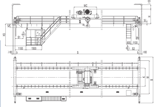 (1)、LH型电动葫芦桥式起重机具有外形尺寸紧凑、建筑净空高度低、自重轻、轮压小等优点。