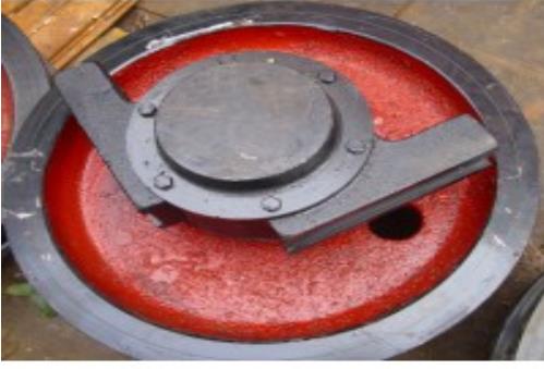 车轮组是用来支承起重机和载荷,并在轨道上使起重机往复行驶运行的装置。车轮主要损伤的形式是磨损、硬化层压碎和点蚀。车轮的材料一般采用ZG430-640铸钢。为了提高车轮表面的耐磨强度和寿命,踏面应进行表面热处理,要求表面硬度为HB300-350,淬火深度不少于20mm.