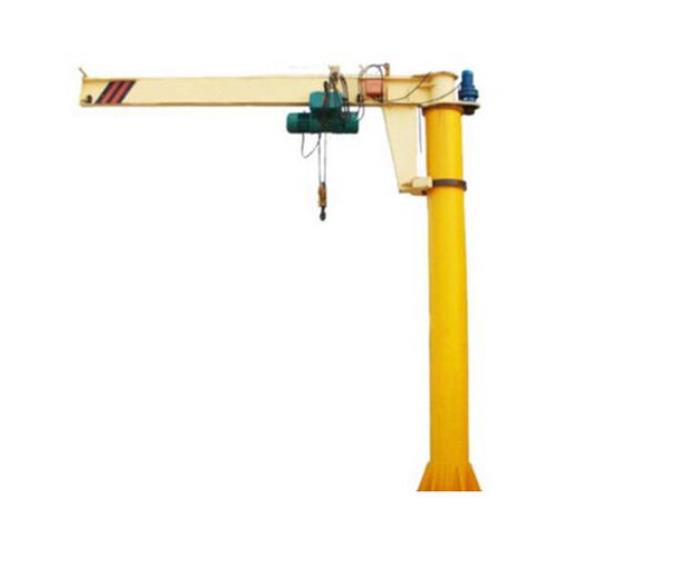 小型悬臂吊起重机工作强度为轻型,起重机由立柱,回转臂回转驱动装置及电动葫芦组成,立柱下端通过地脚螺栓固定在混凝土基础上,由摆线针轮减速装置来驱动悬臂回转,电动葫芦在悬臂工字钢上作左右直线运行,并起吊重物。起重机旋臂为空心型钢结构,自重轻,跨度大,起重量大,经济耐用。内置式行走机构,采用带滚动轴承的特种工程塑料走轮,摩擦力小,行走轻快;结构尺寸小,特别有利于提高吊钩行程。