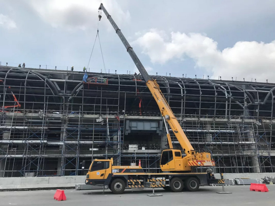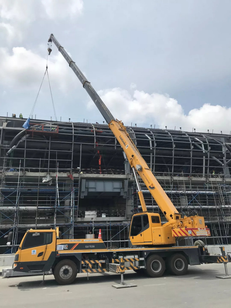 中国建筑集团有限公司作为中国建设企业的代表,对施工设备的要求极为严格,其多年来,一直与柳工保持着良好的合作关系,在多项大型工程中强强联合。2016年,柳工TC250A4汽车起重机从众多设备中脱颖而出,成功跟随中国建筑投入到素万那普机场2期工程——机场T2航站楼的建设中来,主要承担吊装预制板和候机楼地板铺设工作。在高强度,高负荷的运转下,柳工起重机凭借卓越的性能,超高的施工效率,零故障得到客户的高度赞扬,始终是该项目施工的吊装主力。