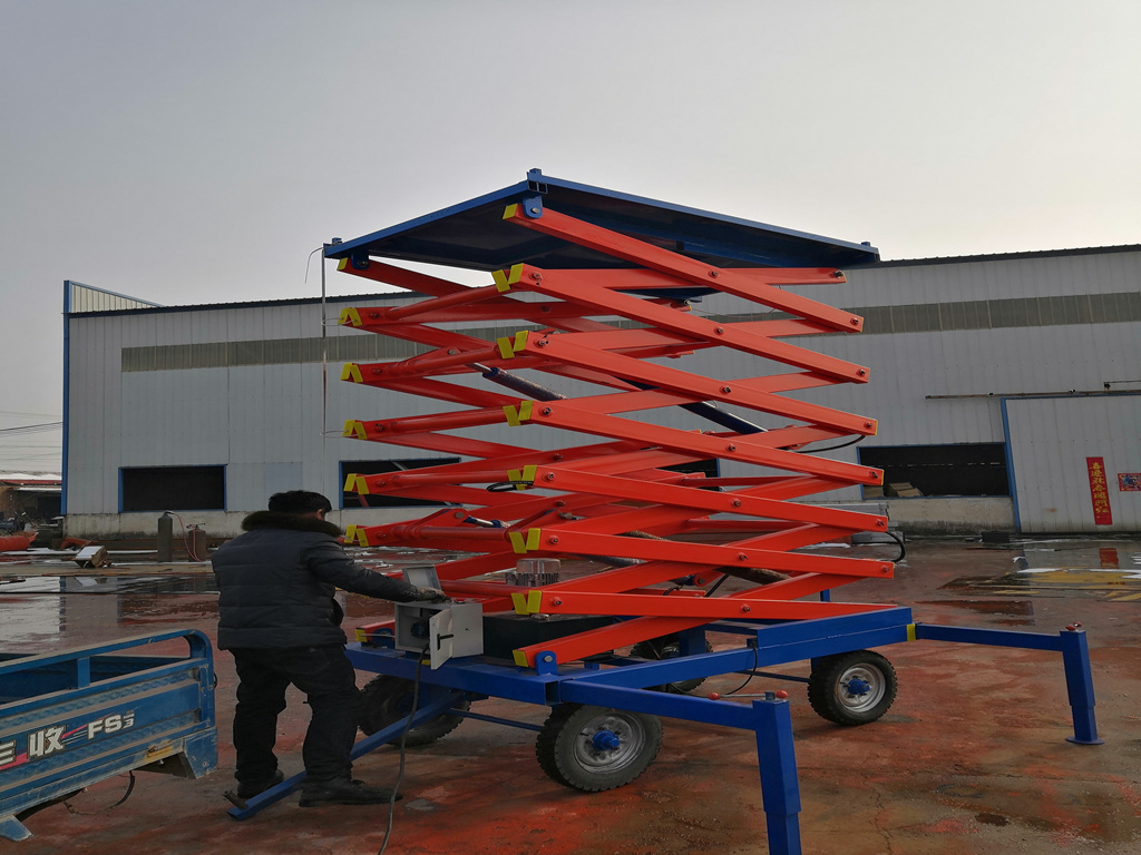 6、升降平台也可配上手动液压装置,可在停电或无电源场所照常升降工作,并可加伸缩平台,在平台长度不足时可延伸至所需位置,从而提高工作效率