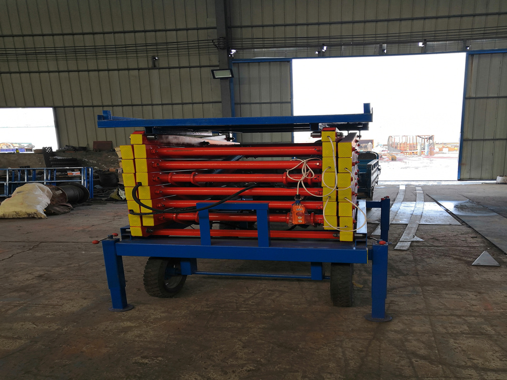 6、升降平台也可配上手动液压装置,可在停电或无电源场所照常升降工作,并可加伸缩平台,在平台长度不足时可延伸至所需位置,从而提高工作效率