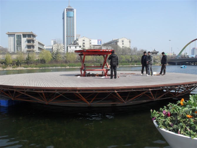 升降舞台的旋转台上面可以装饰成不同风格样式使用.
