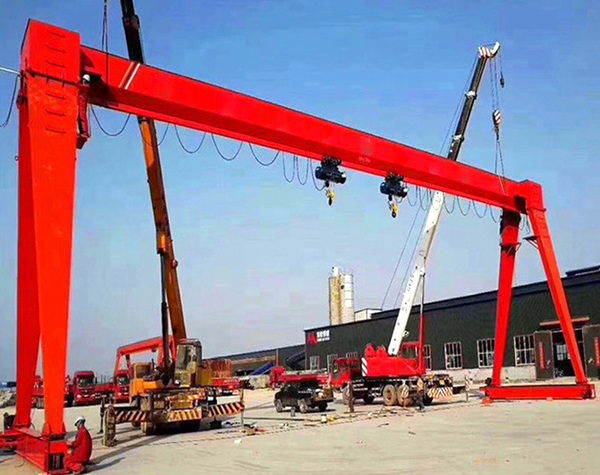 起重机龙门吊介绍 龙门吊是一种常见的起重设备,也被称为龙门式起重机,是桥式起重机的一种变形。它具有门形框架结构,可以在地面的轨道上行走,主要用于室外货场、料场货、散货的装卸作业。龙门吊通常具有两个支脚,可以承载主梁,主梁两端可以具有外伸悬臂梁,具有场地利用率高、作业范围大、适应面广、通用性强等特点,在港口货场得到广泛使用。