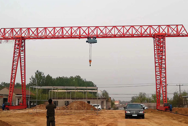 这种结构的优点在于可以充分利用桥架下面的空间,减轻对桥架的载荷,使整个机器安装尺寸紧凑,便于运输,操作方便,工作稳定可靠等。然而,电动葫芦门式起重机也有其缺点,例如当跨度较大时需设置中间支撑以增加跨距,受端部支点限制而不能做成无支点的形式,对于较重及笨重的物件不能直接进行吊运,不能适应超载的要求等。