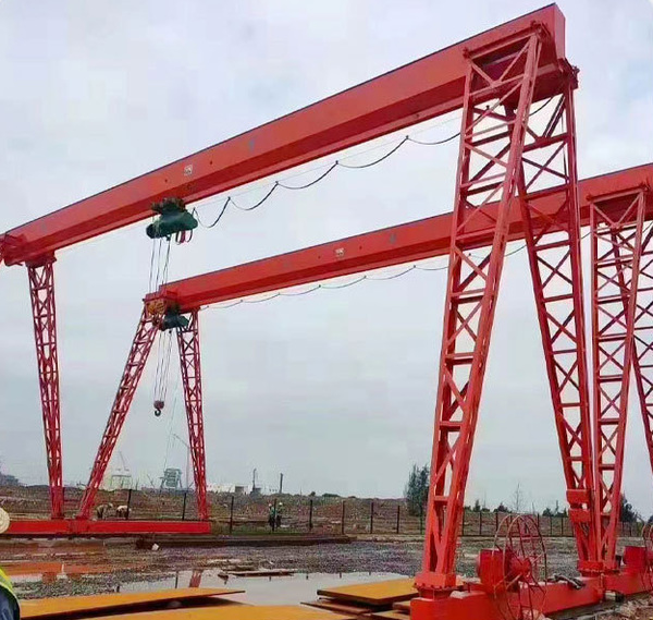 桥式起重机是横架于车间、仓库和料场上空进行物料吊运的起重设备。由于它的两端坐落在高大的水泥柱或者金属支架上,形状似桥,因此得名。桥式起重机的桥架沿铺设在两侧高架上的轨道纵向运行,可以充分利用桥架下面的空间吊运物料,不受地面设备的阻碍。它是使用范围**广、数量**多的一种起重机械。