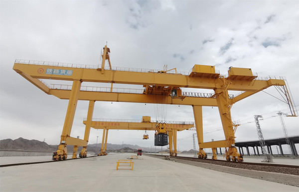 龙门吊是一种桥式起重机,其金属结构像门形框架,承载主梁下安装两条支脚,可以直接在地面的轨道上行走,主梁两端可以具有外伸悬臂梁。龙门吊具有场地利用率高、作业范围大、适应面广、通用性强等特点,在港口货场得到广泛使用。