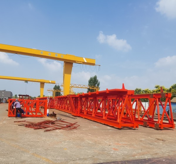 架桥机的主要结构包括主梁、导梁、支腿、起吊天车、横移机构、纵移机构、电气控制系统等部分。其中,主梁是架桥机的主要承载结构,导梁则用于引导架桥机前进的方向,支腿用于支撑架桥机的重量和保证稳定性,起吊天车则用于吊装和拼装桥梁构件。横移机构和纵移机构则分别用于实现架桥机在横向和纵向上的移动和定位。