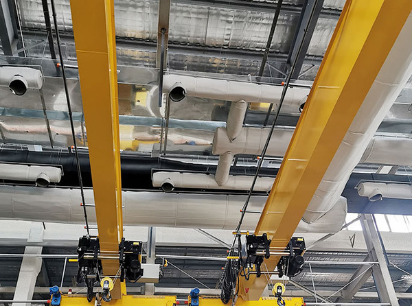 工业生产:桥式起重机在工业生产中发挥着重要作用,特别是在制造业、物流业、船舶制造业等领域。它们可以用于吊装和搬运各种原材料、半成品和成品,提高生产效率和降低劳动强度。