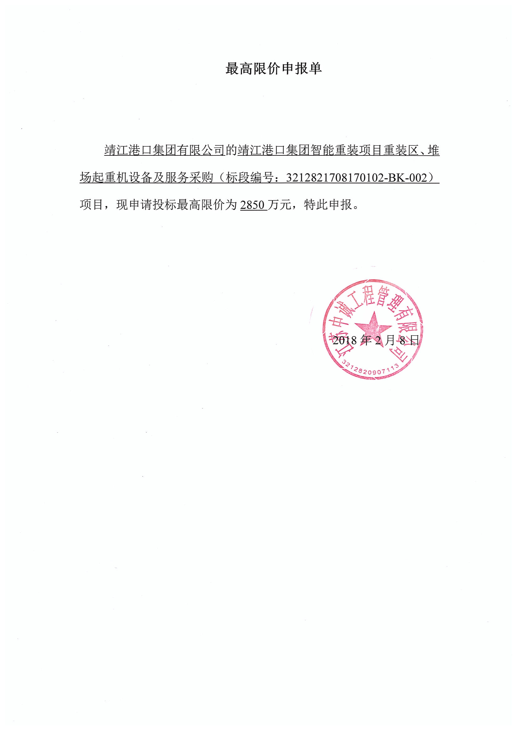 靖江港口集团有限公司智能重装项目的最高限价公示