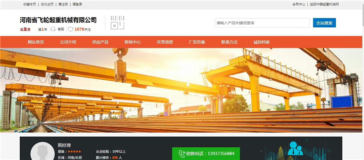 移动版:恭喜河南飞轮起重签约全球起重机械网2019全网营销套餐!
