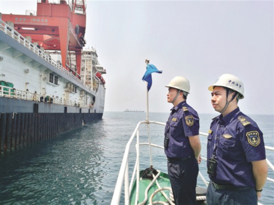 据了解,“海洋石油201”是由中国海洋石油总公司投资建设的我国首艘3000米深水铺管起重船,是国内自主设计和建造的第一个深水海洋工程船舶装备项目。这次惠州海事局利用该船在惠州锚地修整间隙,主动到距惠州港20海里外的锚地送服务上门,为船舶实施安全检查。