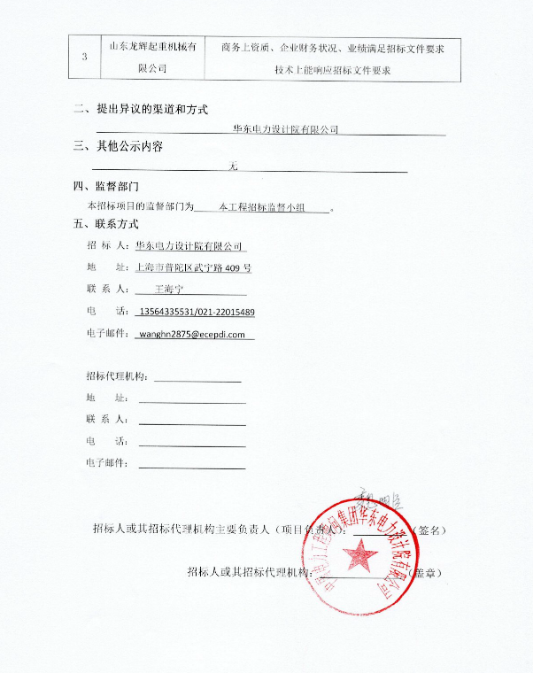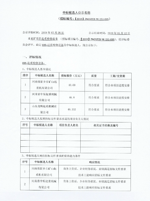 兖矿项目起重检修设备招标采购中标候选人公示
