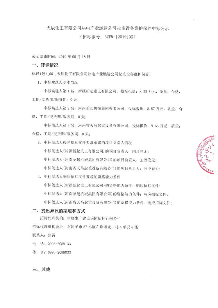 移动版:天辰化工有限公司热电产业燃运公司起重设备维护保养中标公示