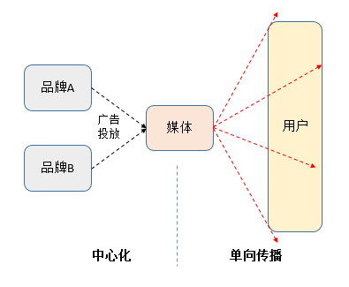 传统模式:中心化传播,媒体可以供用户接收的信息有限
